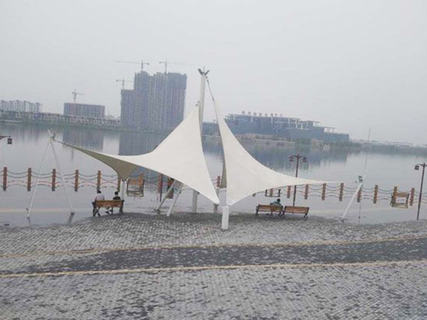 膜建筑中采用具有防護的膜材,可使建筑具有良好的自潔效果。
